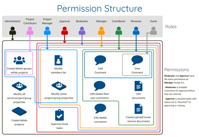 Using the PageSeeder group / role permission model as an architectural foundation supports this process with maximum flexibility and security, allowing for content to flow from one stakeholder group to the next with minimal friction. For example: